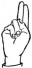 На ћирилици написано КАЋА ГОРАНОВИЋ састоји се из 13 слова [?]. Исписано ћириличном једноручном азбуком за глувонеме: